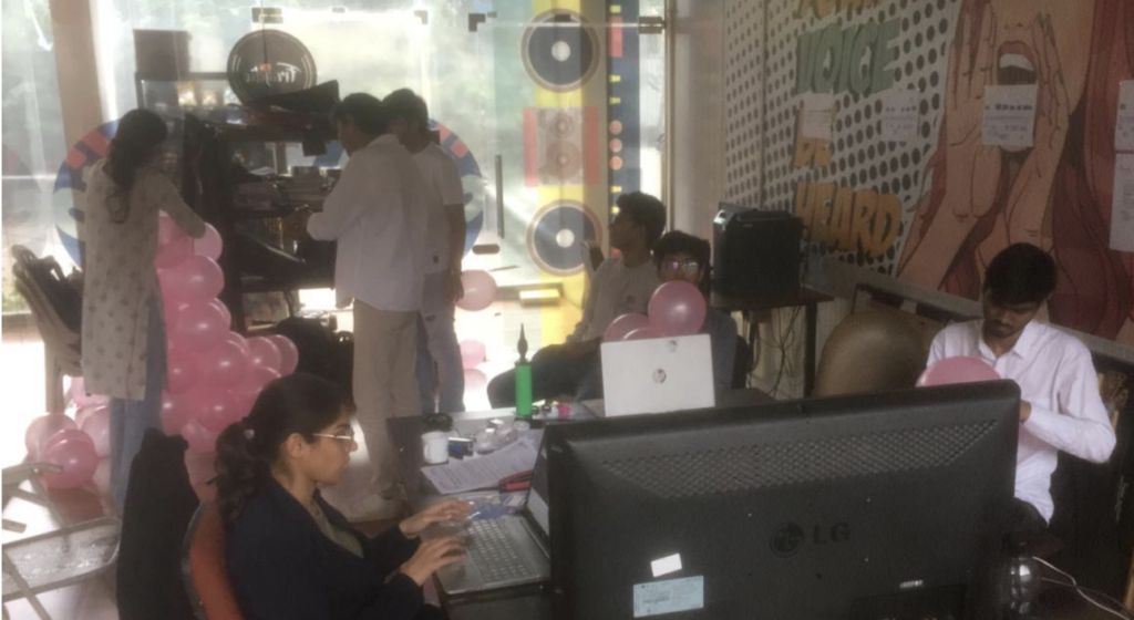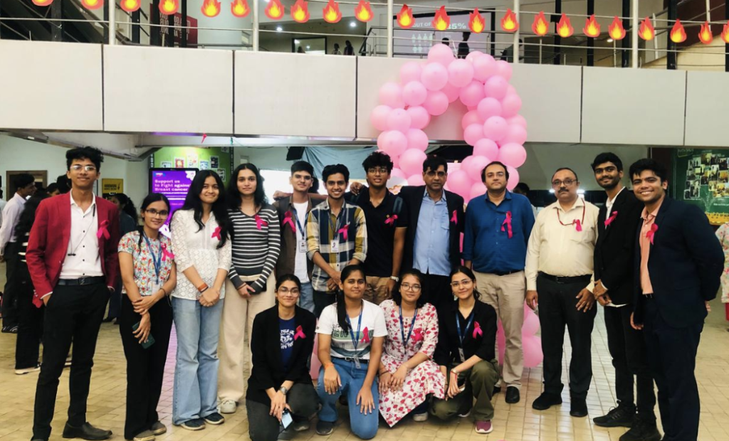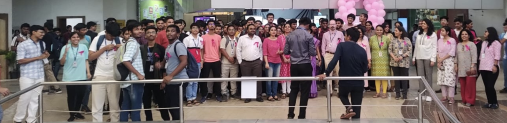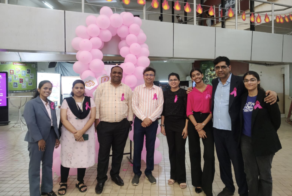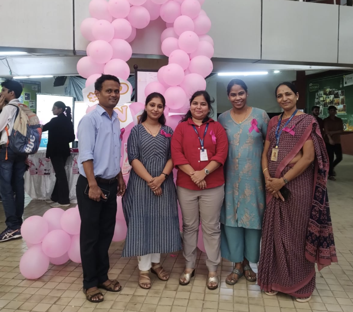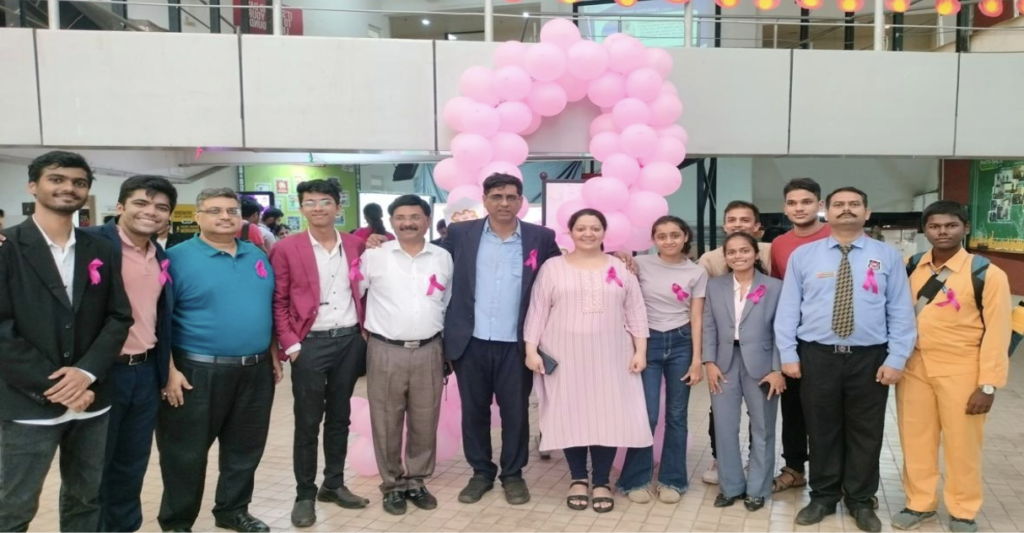 A Breast Cancer Awareness Campaign organised by Non-Malignant at Vidyalankar Campus, uniting students and faculty for a meaningful cause.
